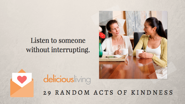 29 random acts of kindness By Jessie Shafer | February 1, 2017 26/31 February 25 Listen to someone without interrupting. 0 comment 42 Facebook LinkedIn Twitter Google + Pinterest Print