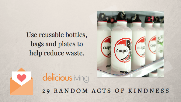 29 random acts of kindness By Jessie Shafer | February 1, 2017 30/31 February 29 Use reusable bottles, bags and plates to help reduce waste. 0 comment 42 Facebook LinkedIn Twitter Google + Pinterest Print