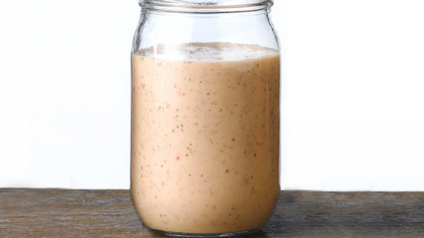 Store-bought organic bananas can be combined with your own fresh strawberries and sprigs of mint to make a refreshing warm-weather beverage.
