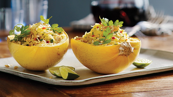 This warm squash salad combines spicy, sweet and sour elements in a fresh balance that enlivens traditional roasted turkey.