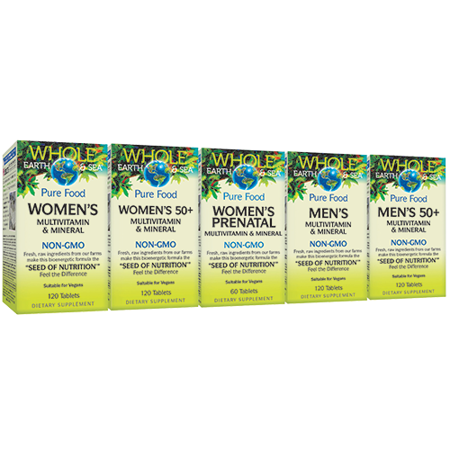 | This high strength formula now provides 2150 mg of EPA, DHA, and DPA per 2-softgel serving and features a fresh new look! Plus, our revolutionary Enteripure® technology protects the fish oils from the stomach’s harsh environment and ensures targeted delivery to the intestines with no fishy aftertaste or burps. naturalfactors.com | From our farms, we harvest fresh organic, non-GMO ingredients for our Whole Earth & Sea® age- and gender-specific multivitamin/mineral formulas, including bone structure. Each provides fresh, raw ingredients such as algae (calcium) and amla (vitamin C). Our propriety EnviroSimplex® technology produces raw nutrition from whole plants, capturing all the vibrant energy and goodness of nature. wholeearthsea.com |